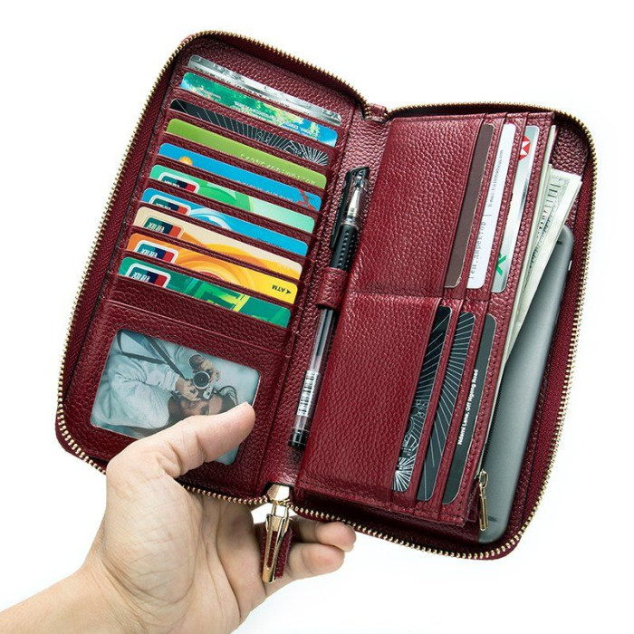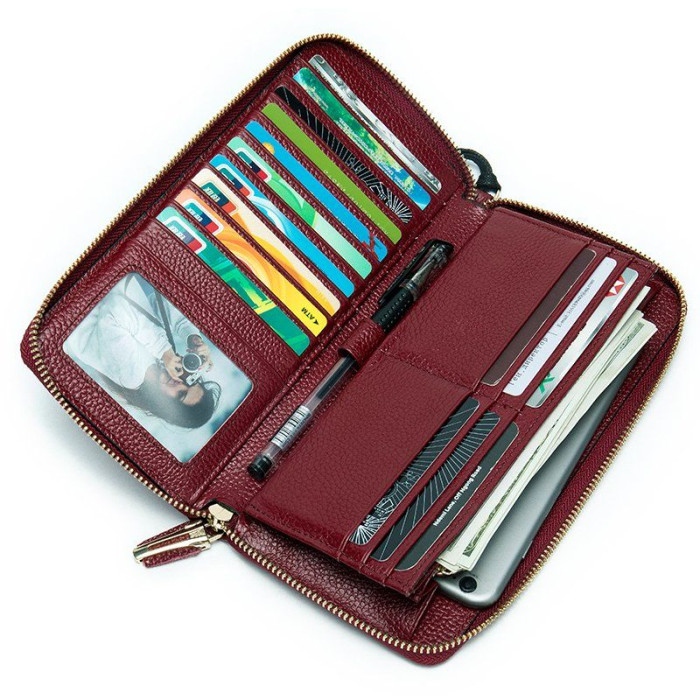 Яскравий шкіряний жіночий клатч з натуральної шкіри флотар. Шкіра такого типу відрізняється своєю зносостійкістю. На ній менш помітні подряпини і потертості. Модель підійде для дівчат, які люблять яскраві і місткі аксесуари і є шанувальниками червоного кольору. Клатч доповнено всім найнеобхіднішим для повсякденного життя. Модель ідеально поєднує в собі функції гаманця і візитниці. Міцна шкіра і якісна фурнітура збільшать термін служби вашого аксесуара. Клатч зручно сидить в руці. При бажанні ви можете носити його і на зап'ясті. У комплекті йде пилозахисний чохол.
