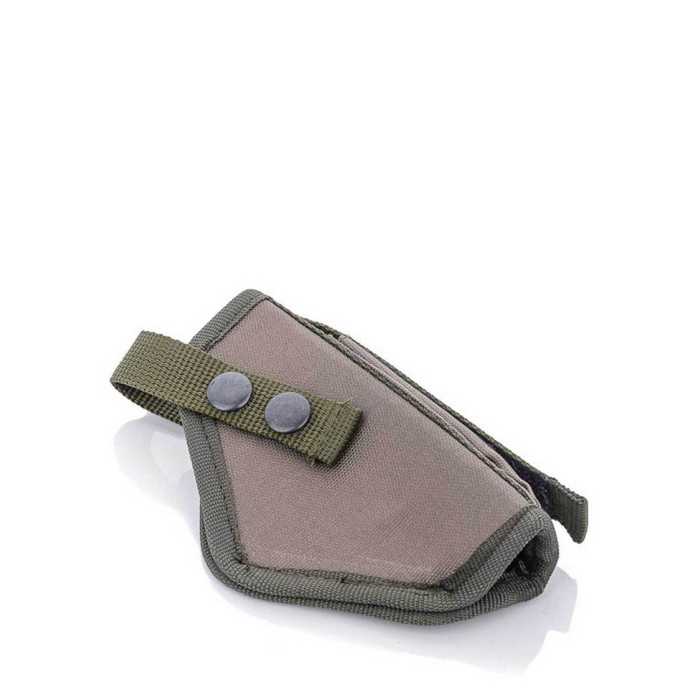 Кобура для пістолета універсальна 70522 виконана з якісного щільного матеріалу. Кріпиться на ремінь шириною 5 см.з бічної частини є відділ під запасний магазин, який фіксується кнопкою. На ремінці, який фіксує пістолет, має дві кнопки, завдяки яким можна кріпити пістолети різного виду.