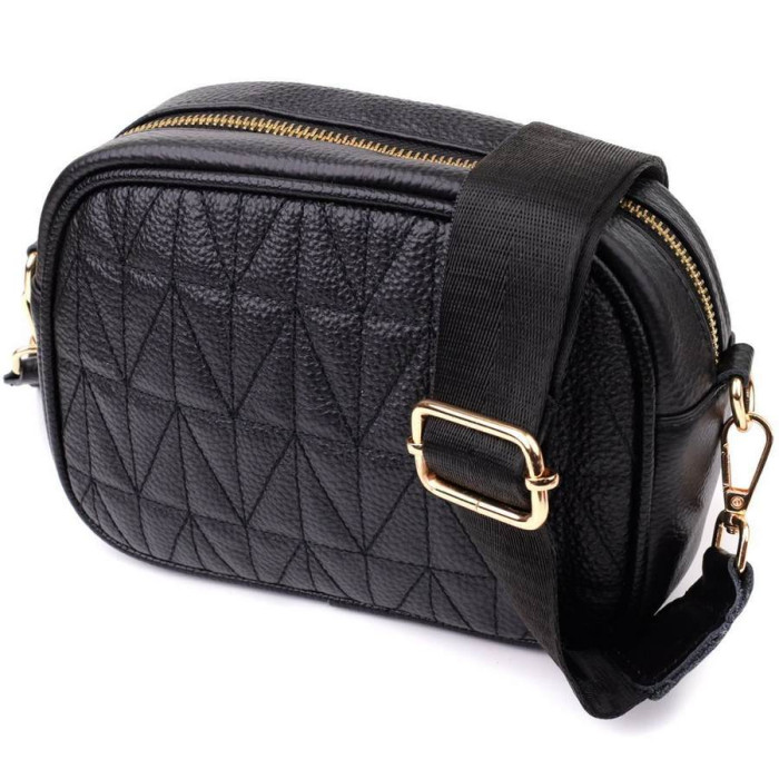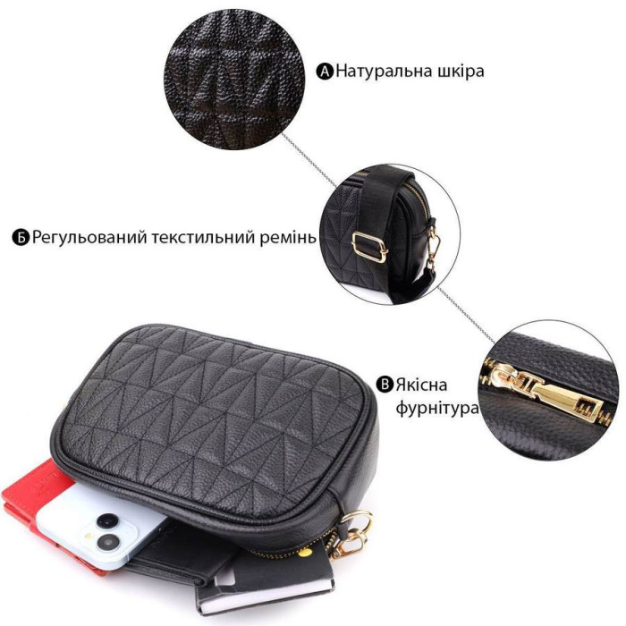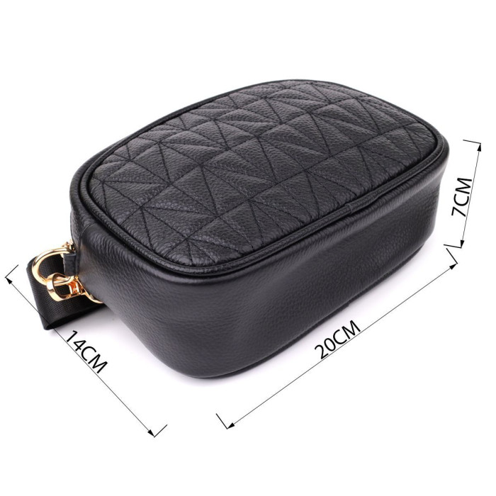 Елегантна чорна стьобана сумка Vintage з натуральної шкіри - це аксесуар, який однаково гармонійно виглядає і в повсякденному образі, і в ошатному стилі. Компактна та чітка форма підкреслює витонченість моделі, а стібка на лицьовій стороні надає їй вишуканого шарму.