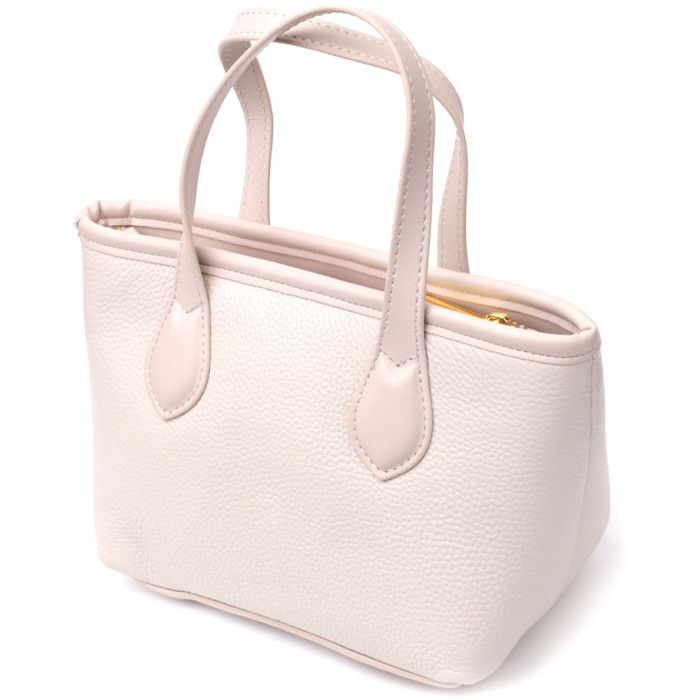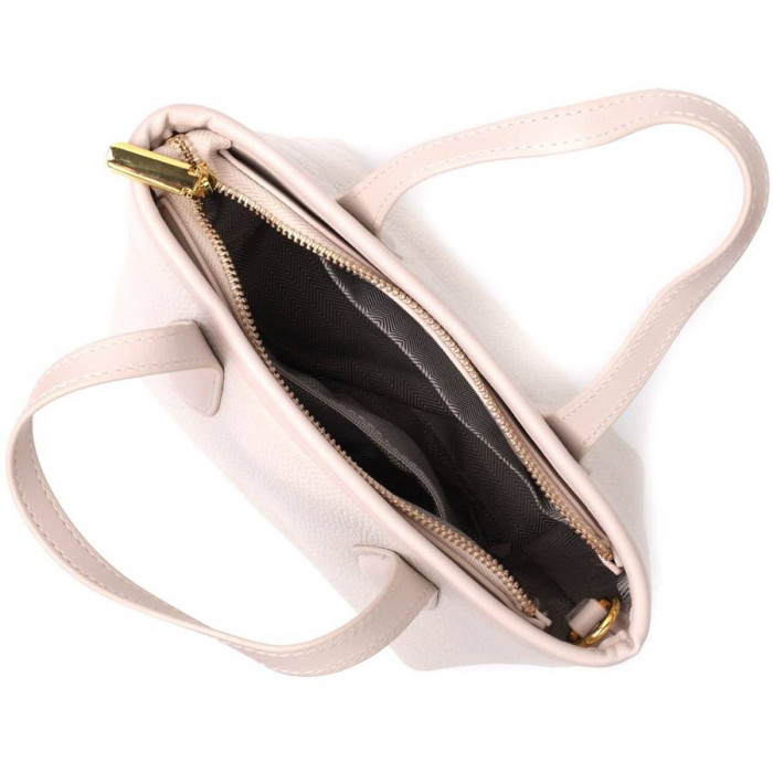 Компактна сумка з натуральної шкіри флотар, яка невибаглива у догляді та довго носиться. Аксесуар складається з одного основного відділення, потайної кишені на блискавці та кишені відкритого типу. Носити сумку можна в руці, на плечі і через плече, для цього є шкіряні ручки і шкіряний ремінь, що знімається. В аксесуарі використано якісну фурнітуру кольору жовтого золота. Шкіряна сумка – найкращий подарунок для будь-якої дівчини.
