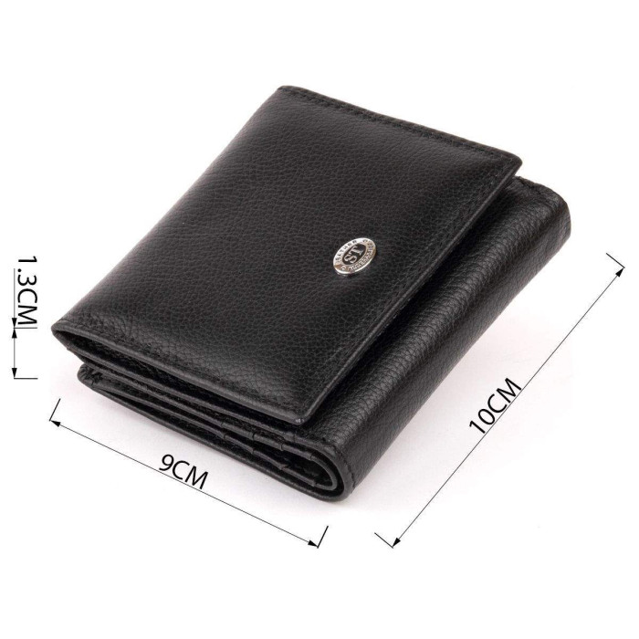 Гаманець компактного розміру і чорного кольору дуже універсальний. Виріб поміщається в жіночу сумочку навіть саму маленькую.Сам гаманець складається з двох автономних частин - автономної монетниці на кнопці і основної частини для купюр і кредиток. Колір гаманця не прив'язує вас до гардеробу. Натуральна шкіра з якої виконана модель має найвищу якість і забезпечує довший термін служби виробу. Ми впевнені, що гаманець прослужить вам далеко не один рік. Модель має фірмову упаковку у вигляді картонної білої коробки з логотипом.