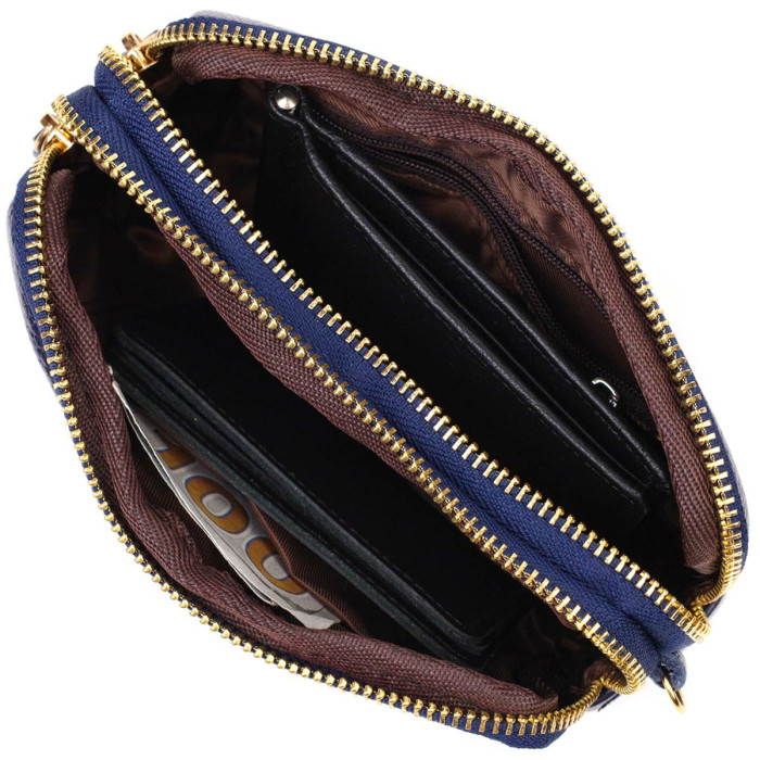 Стильна жіноча сумочка-клатч із натуральної м'якої шкіри високої якості. Виріб дуже зручний, можна носити в руці та на зап'ясті, відмінний варіант для любителів невеликих сумок. Модель доповнена фурнітурою золотистого кольору. Аксесуар має два основні відділення у яких по кишеньці - на блискавці та відкритого типу. Закривається клатч на блискавку.