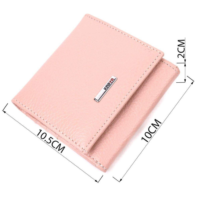 Красивий компактний жіночий гаманець із натуральної шкіри високої якості. Усередині є відділення для купюр, шість осередків для кредитних карток, незвичайна монетниця і прихована одна кишеня. У виробі використано якісну фурнітуру, а також міцну фірмову підкладку. Невеликий шкіряний гаманець поміститься навіть у найменшу сумочку. Закривається модель у два складання на кнопку. Такий гаманець однозначно порадує будь-яку жінку.