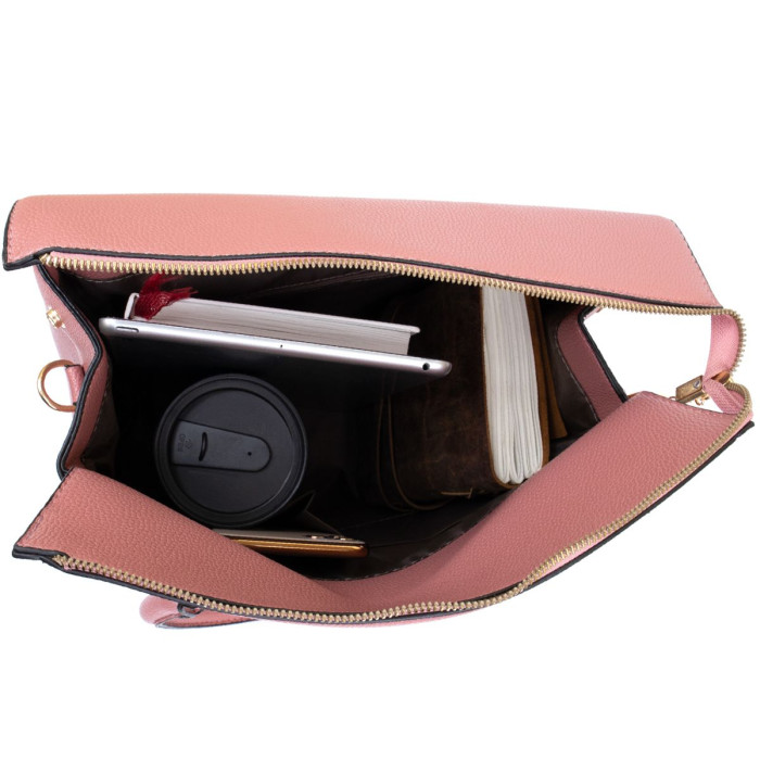 сумка: закривається на блискавку і має основне відділення з потайною кишенею на блискавці і двома кишенями для мобільного телефону, ручки для носіння в руках і ремінець на плече, кишеня на блискавці на тильній стороні сумки;
