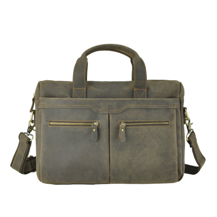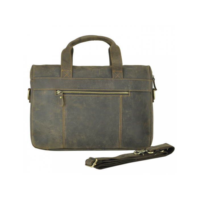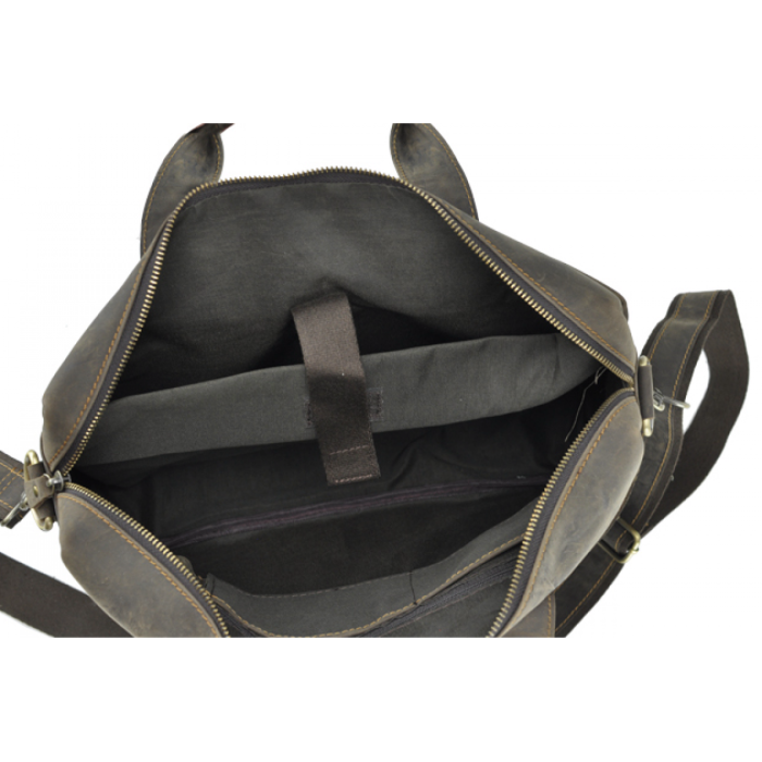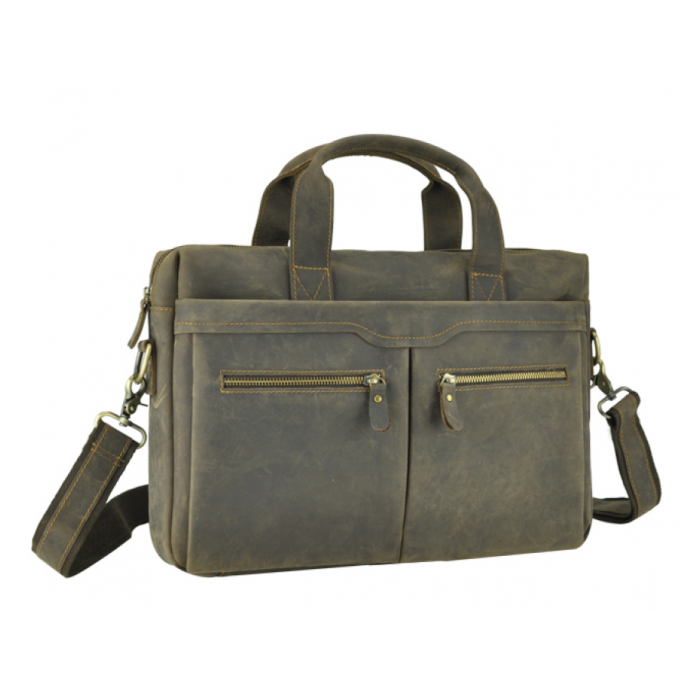 Чоловіча сумка може використовуватися як сумка для ноутбука. Виготовлена з міцної телячої шкіри коричневого кольору. Модель має якісну металеву фурнітуру, стійку до інтенсивної експлуатації. Носити можна в руках або на плечі. Плечовий ремінь можна регулювати по довжині або відстібати при непотрібності. Зовні передбачено кілька кишень на блискавці, які підійдуть для зберігання гаманця або канцелярського приладдя. В основному відсіку передбачений спеціальний відділ під ноутбук, невеликі відділи під комп'ютерні гаджети або телефон.