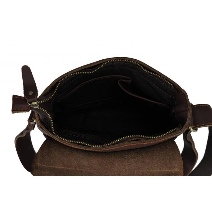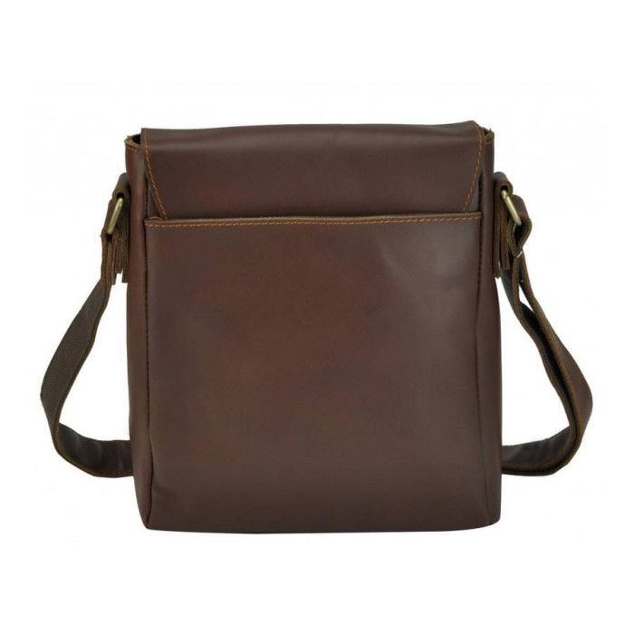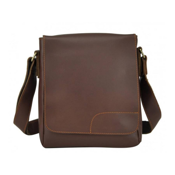 Вантажний чоловічий месенджер з телячої шкіри з гладкою поверхнею. Фурнітура бронзового кольору, шкіряний пуллер, декор у вигляді шва міцною ниткою. Наплічна шлейка регулюється по висоті. Сумку можна носити на плечі або через плече. Якісна підкладкова тканина, всередині основного відсіку два кишені відкритого типу і кишеня на блискавці. З тильного боку розташований додатковий відділ майже по всьому периметру сумки. Такий месенджер ідеально підійде для планшета, щоденника, портмоне і інших необхідних на кожен день дрібниць, які завжди повинні під рукою.