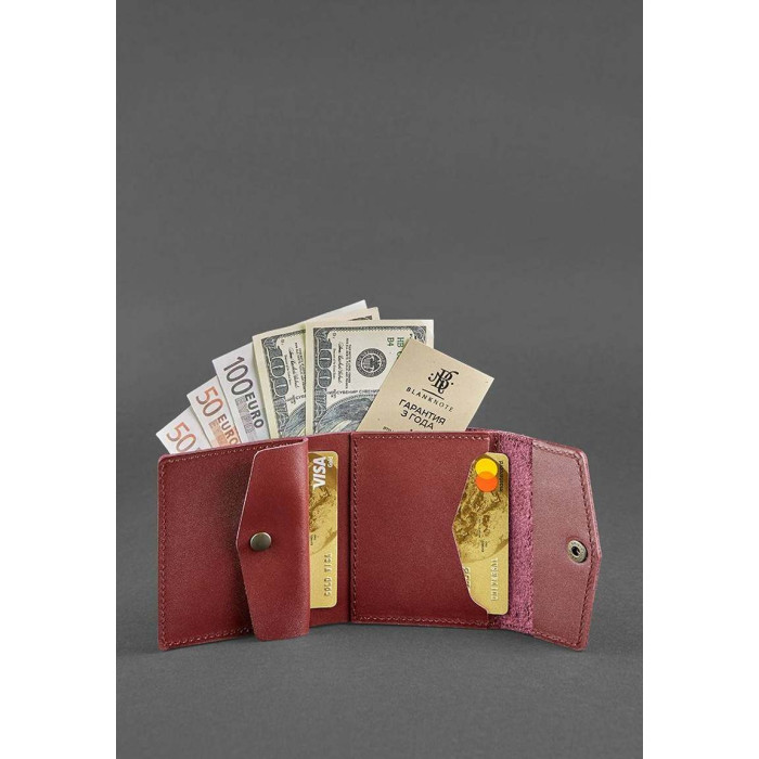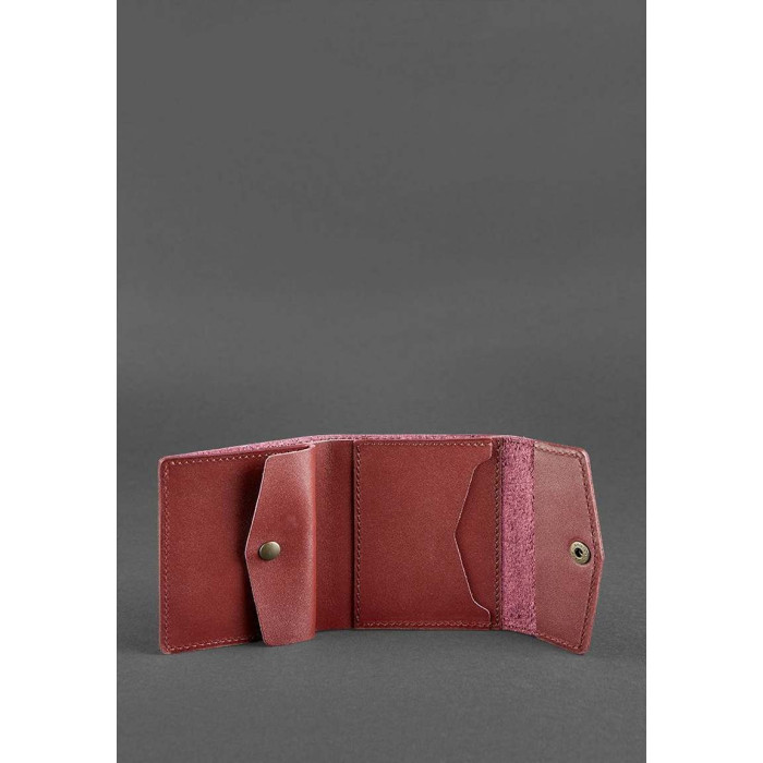 Розмір: 11.5x9 см Матеріал: натуральна шкіра Упаковка: крафтова коробка Бордовий гаманець подвійного..