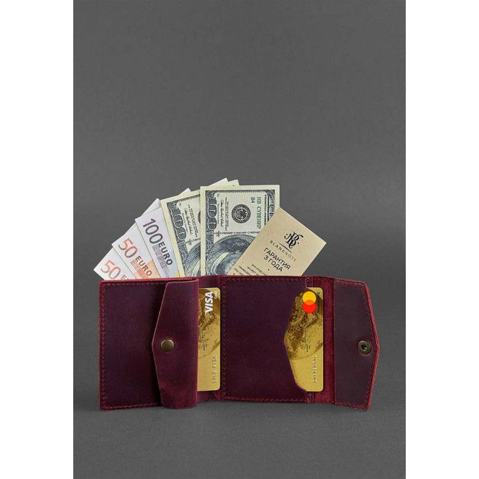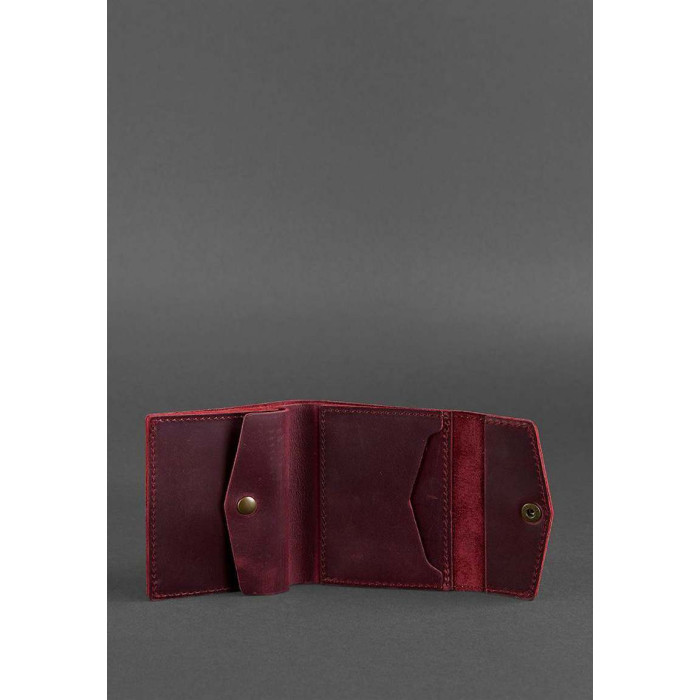 Бордовий гаманець подвійного складання з натуральної шкіри Crazy Horse.