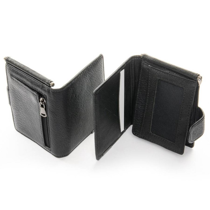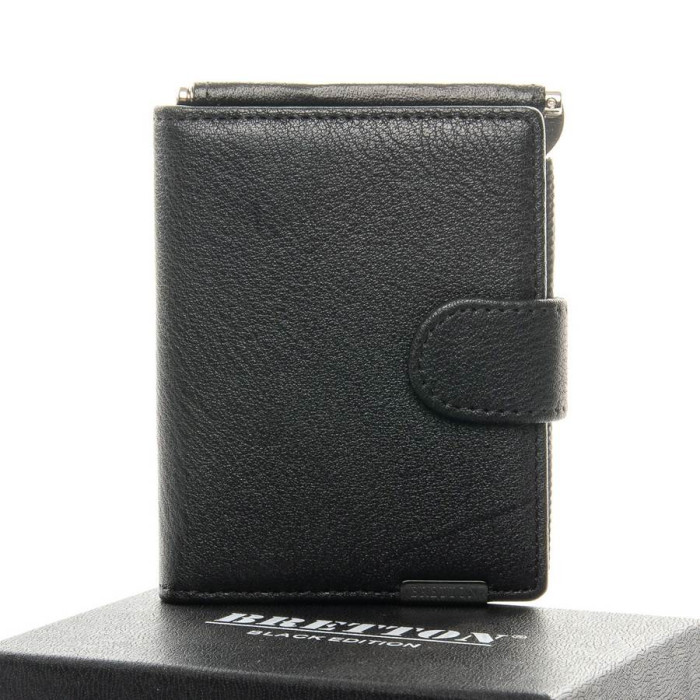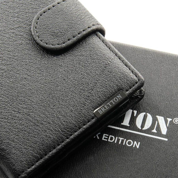 Чоловічий шкіряний гаманець-затиск для банкнот Bretton, серія Black Edition. Виготовлений з м'якої натуральної шкіри. Всередині є 6 кишень для візитних карток і 2 кишені-сітки. Зовні знаходиться монетниця на блискавці. Розмір (см) 11*8,5*2
