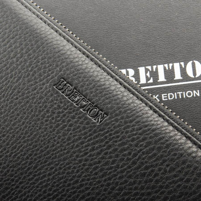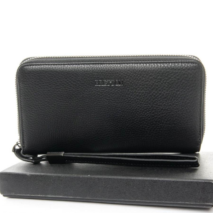 великий шкіряний Чоловічий гаманець-барсетка Bretton, серія Black Edition. Виготовлений з м'якої натуральної шкіри. Закривається на блискавку. Всередині є 3 окремих кишені для банкнот або смартфону, велика кишеня-монетниця на блискавці, 8 кишень для візитних карток і 2 великих відкритих кишені. В комплекті є знімний ремінець ремінь.