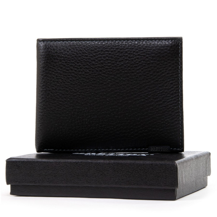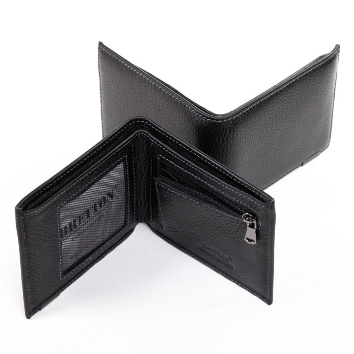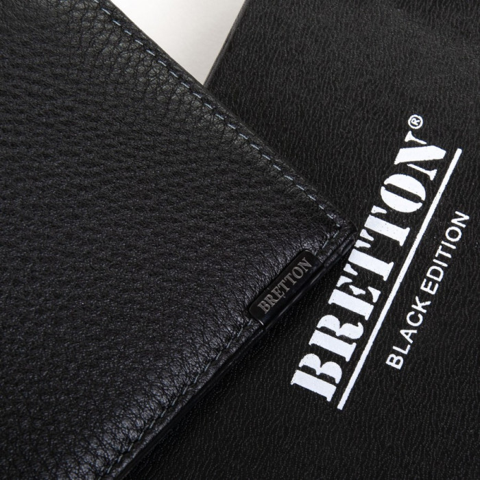 Чоловічий полегшений шкіряний гаманець Bretton, серія Black Edition. Виготовлений з м'якої натуральної шкіри. Усередині є одне відкрите і одне на блискавці відділення для банкнот, 2 відкритих кишені і монетніца на блискавці. Розмір (см.) 11,5*9*2