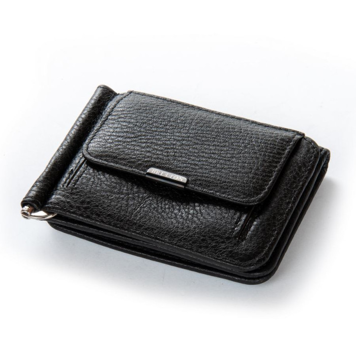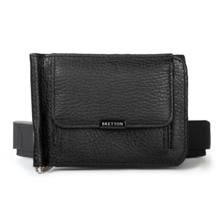 Чоловічий шкіряний гаманець-затиск для банкнотів Bretton, серія Black Edition. Виготовлений з м'якої натуральної шкіри. Усередині в окремому блоці є 6 кишень для візитних карт. Зовні знаходиться монетница на кнопці. Розмір (см) 11*8*2