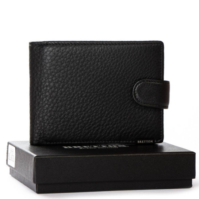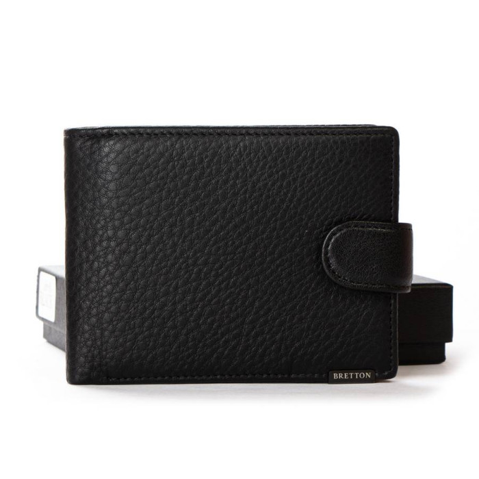 Чоловічий шкіряний гаманець Bretton, серія Black Edition. Виготовлений із м'якої натуральної шкіри. Усередині є: два відкриті відділення для банкнот, 8 кишень для візитних карток на відкидному блоці, 2 великі кишені та монетниця на кнопці.