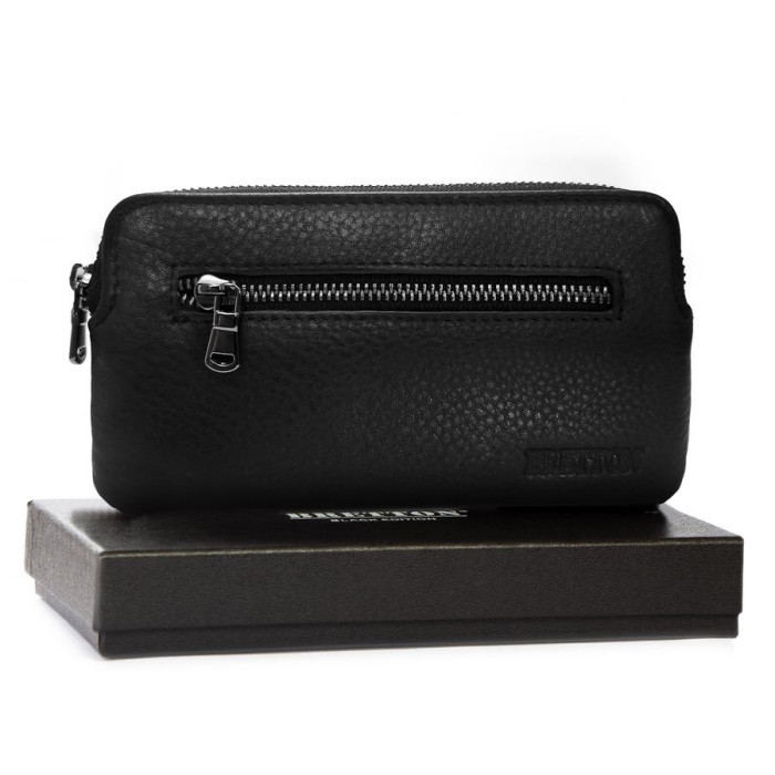 Чоловічий шкіряний гаманець – ключниця Bretton, серія Black Edition. Виготовлений із м'якої натуральної шкіри. Основне відділення для ключів закривається на блискавку. Зовні, на фасаді та на звороті є кишені на блискавці.