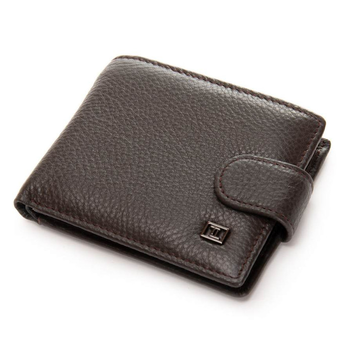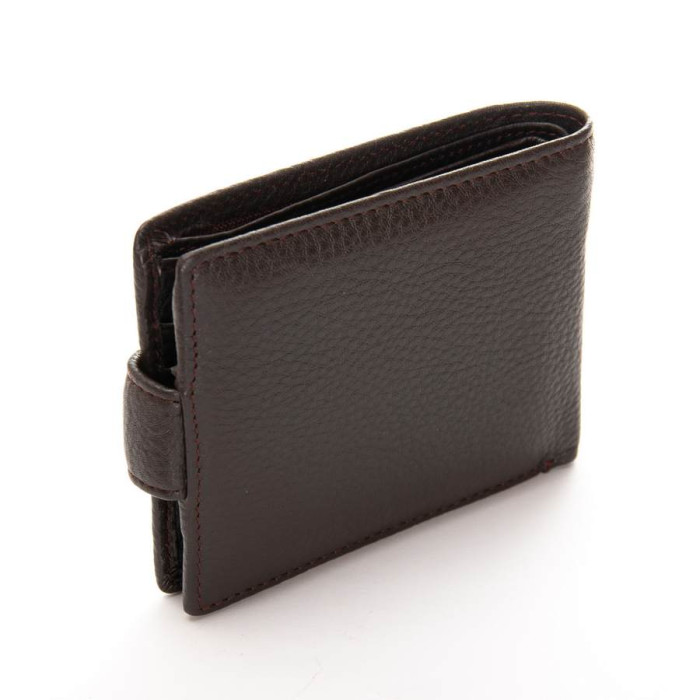 Виготовлений із м'якої натуральної шкіри. Закривається клапаном на кнопці. Усередині є дві відкриті та одне на блискавці відділення для банкнот, 3 кишені для візитних карток, 2 відкриті кишені та монетниця на кнопці.