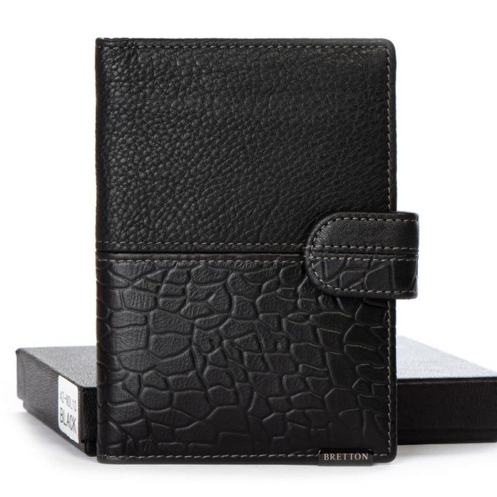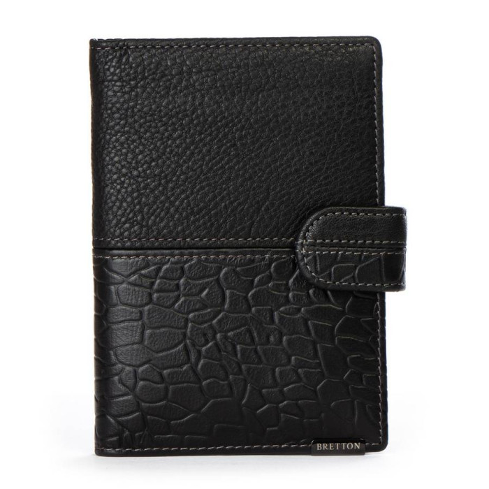 Чоловічі шкіряні обкладинки для паспорта Bretton, серія Black Edition. Виготовлена із м'якої натуральної шкіри. Усередині є 6 відкритих кишень для карток.