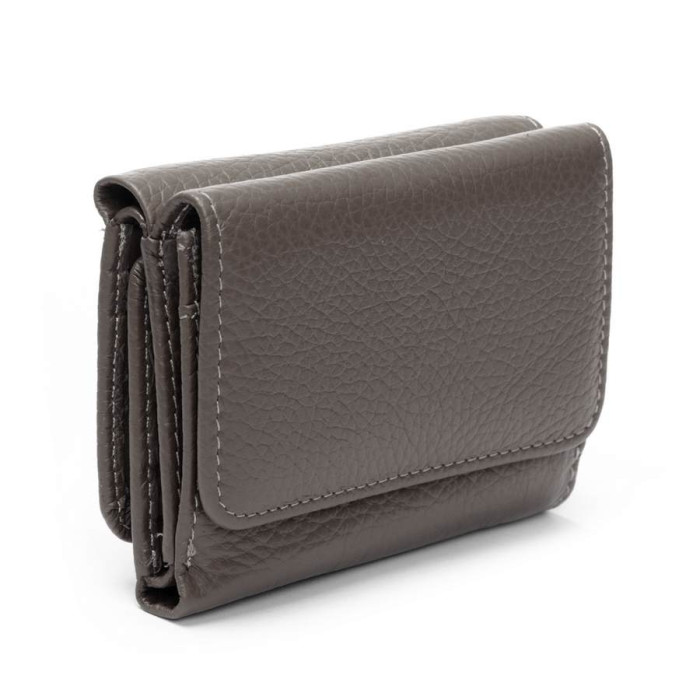 Гаманець виготовлений з натуральної м'якої шкіри. Складається втричі і закривається клапаном на кнопці.