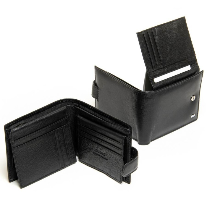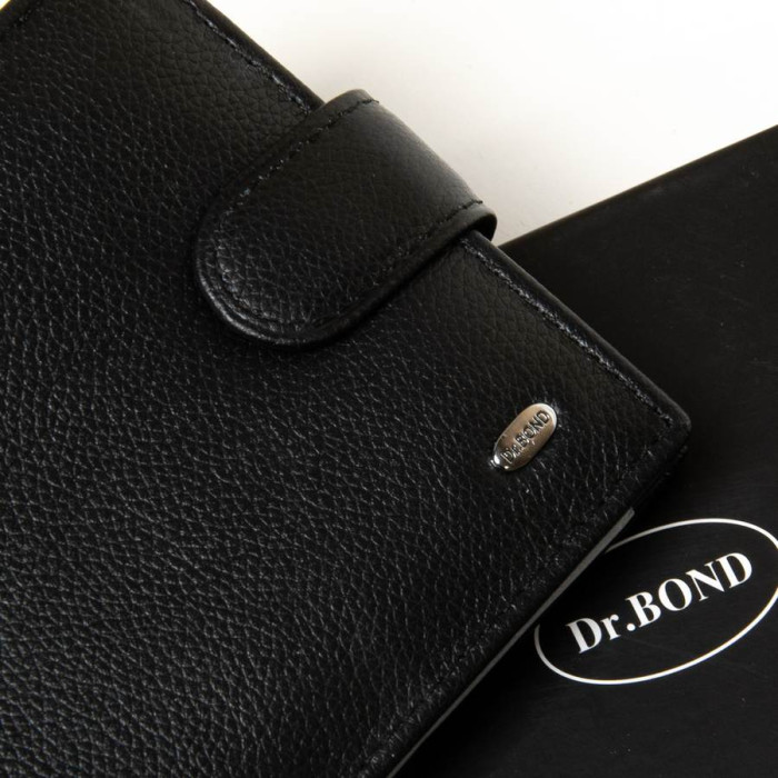 Чоловічий шкіряний гаманець Dr.Bond. Виготовлений з м'якої натуральної шкіри. Шкіряні перегордки у відділеннях для банкнот. Для банкнот є два відкритих і одна кишеня на змійці. На відкидному блоці знаходяться 6 кишень для візитних карт і 2 великих прозорих кишені. Також є монетниця на кнопці одна велика кишеня і прозора кишеня для посвідчення.