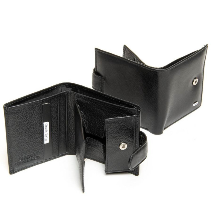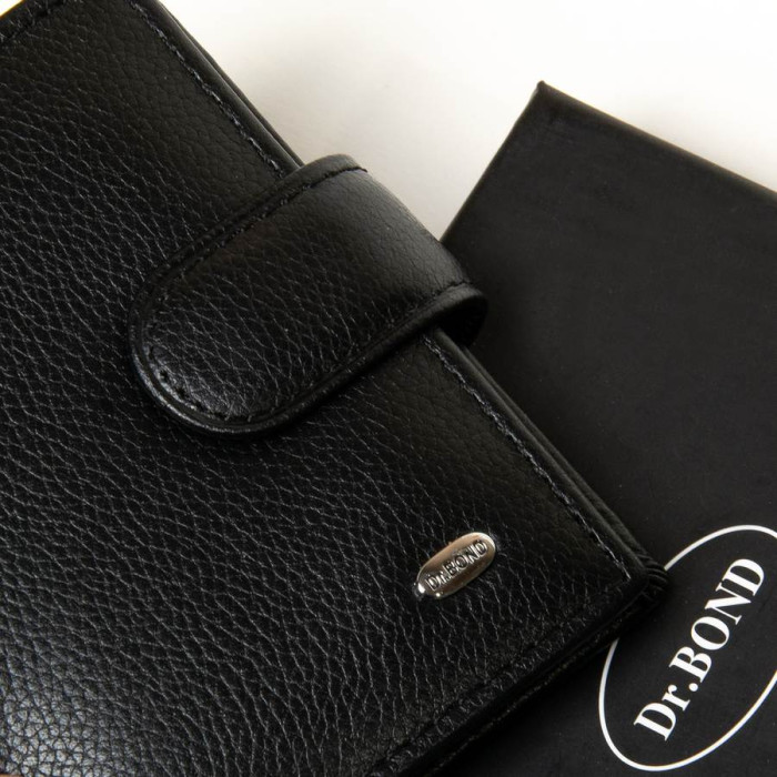Чоловічий компактний шкіряний гаманець Dr.Bond. Виготовлений з м'якої натуральної шкіри. Шкіряні перегородки у відділеннях для банкнот. Два відділення для банкнот. Монетниця на кнопці і три кишені для карт.