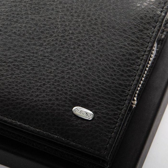 Шкіряне чоловіче портмоне Dr. BOND. Виготовлений з м'якої натуральної шкіри. Шкіряні перегордки у відділеннях для банкнот. 2 відділення для банкнот (1 на блискавці), монетниця на блискавці, 10 кишень для карт, 1 кишеня прозора.