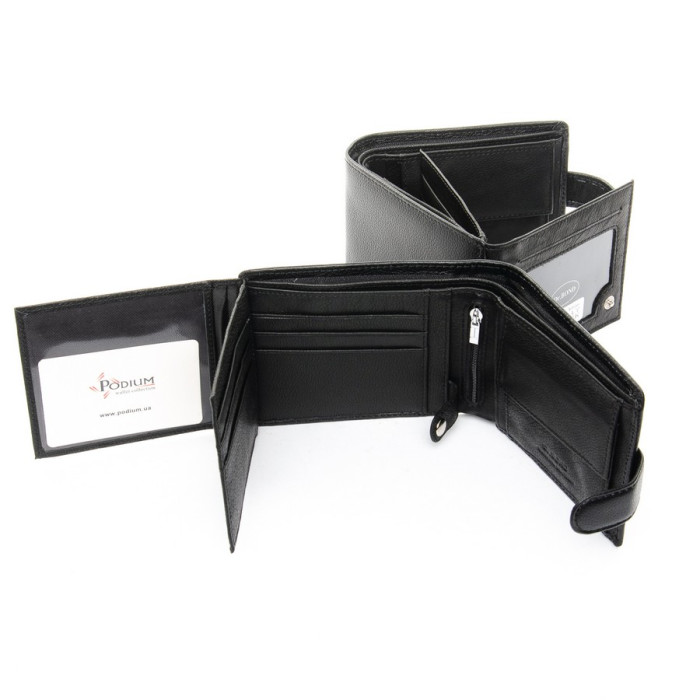 Великий чоловічий гаманець DR. BOND. Виготовлений з м'якої натуральної шкіри. Шкіряні перегордки у відділеннях для банкнотів. Закривається на клапан. Два відкритих і одно на блискавці відділення для банкнотів. 6 кишень для карт, у відкидному блоці дві великі прозорі кишені. Внутрішня кишеня на блискавці. Монетница на кнопці.