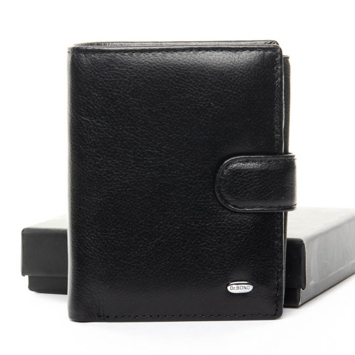 Великий чоловічий гаманець Dr. BOND. Виготовлений з м'якої натуральної шкіри. Шкіряні перегордки у відділеннях для банкнот. Закривається на клапан. Два відкритих відділення для банкнот. 7 кишень для карт, в відкидному блоці 3 великих прозорих кишені. Внутрішня кишеня на блискавці. Монетниця на кнопці.