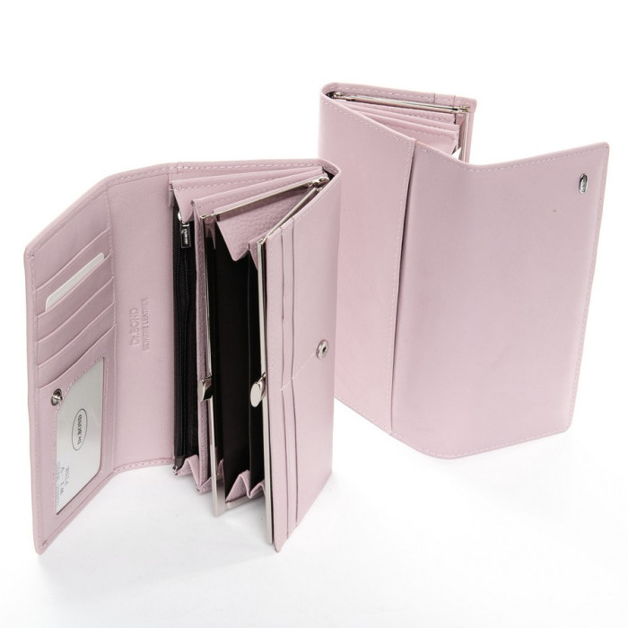 Великий шкіряний жіночий гаманець Dr.Bond. Закривається на кнопку. Усередині знаходяться три відділення для банкнот, монетниця на клямці, велика відкрита кишеня і кишеня на блискавці. Дев'ять кишень для карт і одна з яких прозора. Зовні на зворотному боці є велика відкрита кишеня. Розмір (см) 18,5*9,5*3,5