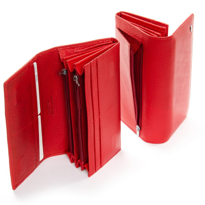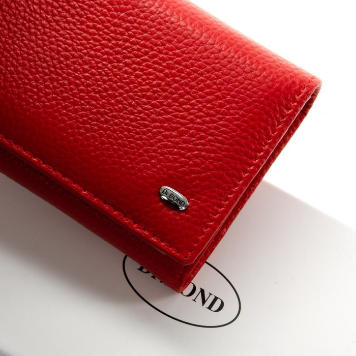 Великий полегшений жіночий гаманець DR. BOND. Виготовлений з натуральної м'якої шкіри з природною текстурою. Закривається на кнопку. Усередині знаходяться 4 відділення для банкнот, дві кишені-монетниці на блискавці, велика відкрита кишеня і 10 кишень для карт і візиток. Зовні гаманця на зворотному боці є кишеня на блискавці.