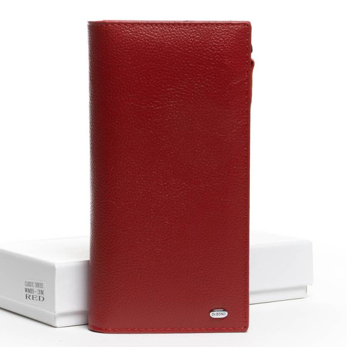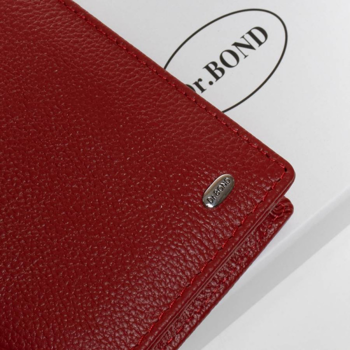 Великий шкіряний гаманець Dr.Bond. Виготовлений з м'якої натуральної шкіри. Переднє відділення закривається на магнітні кнопки. Усередині знаходяться 12 кишень для візитних карток і одна велика відкрита кишеня. Подвійне відділення для банкнот з кишенею-монетницею на блискавці, закривається на загальну блискавку.