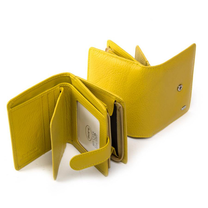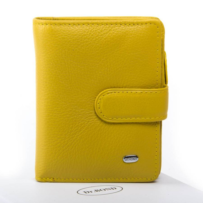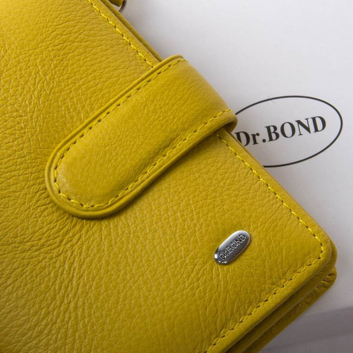 жіночий гаманець Dr.Bond. Виготовлений з натуральної м'якої шкіри з природною текстурою. Основне відділення закривається клапаном на кнопці. Всередині знаходиться одне відкрите відділення для банкнот, 10 кишень для візитних карт і 1 прозорий кишені. Зовні гаманця на зворотному боці знаходиться подвійна монетниця на блискавці.