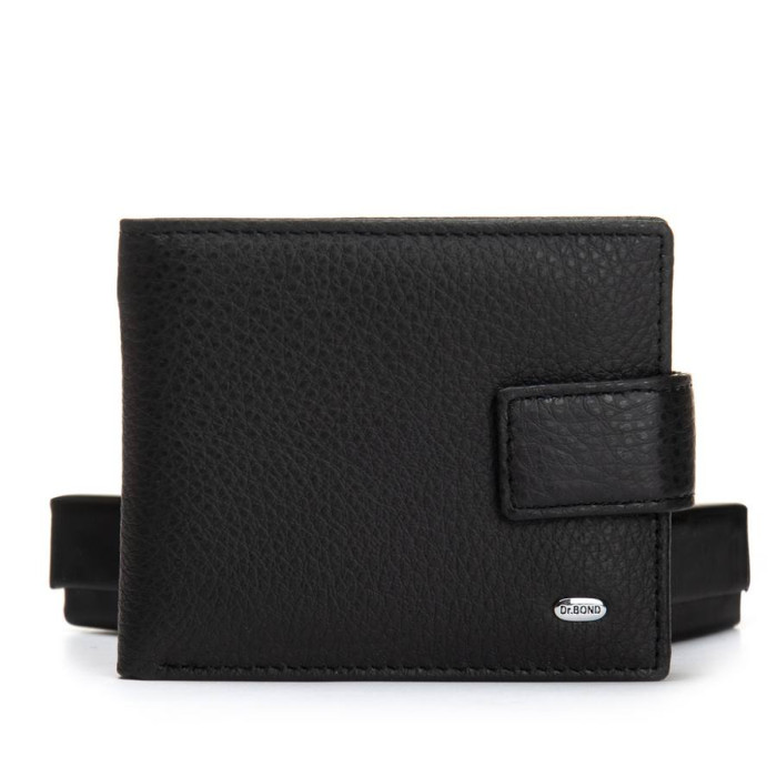 Чоловічий шкіряний гаманець Dr.Bond. Виготовлений із м'якої натуральної шкіри. Закривається на клапан із прихованим магнітом. Шкіряні перегортки у відділеннях для банкнот. Для банкнот є два відкриті відділення та одне на блискавці. На відкидному блоці знаходяться 6 кишень для візитних карток і 3 великі прозорі кишені. Також є монетниця на кнопці.