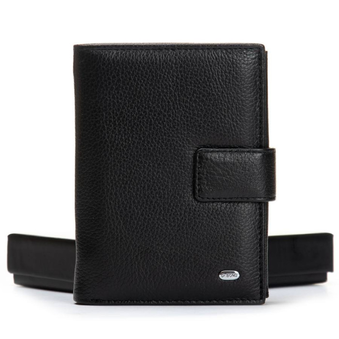 Вертикальне чоловіче портмоне Dr.Bond. Виготовлено із м'якої натуральної шкіри. Закривається на клапан із прихованим магнітом. Шкіряні перегортки у відділеннях для банкнот. Усередині є 2 відділення під банкноти (1 змійка), всередині – відкидний блок із правником, що застібається клапаном, відділення для дрібниці, 5 великих кишень, 8 кишень під карти.