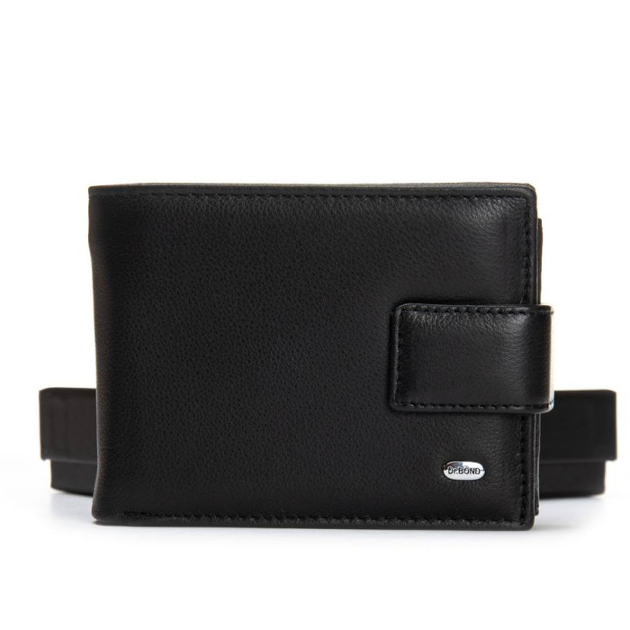 Чоловічий шкіряний гаманець Dr.Bond. Виготовлений із м'якої натуральної шкіри. Закривається клапаном із прихованим магнітом. Шкіряні перегортки у відділеннях для банкнот. Для банкнот є два відкриті відділення та одне відділення на блискавці. На відкидному блоці знаходяться вісім кишень для візитних карток і дві великі прозорі кишені. Також є кишеня на блискавці та монетниця на кнопці.