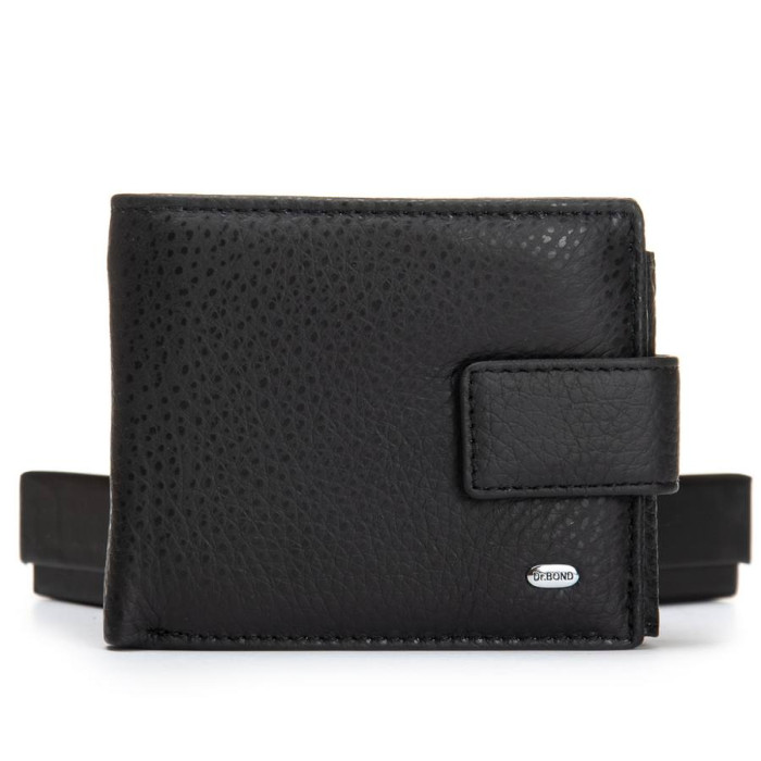 Великий чоловічий гаманець DR. BOND. Виготовлений із м'якої натуральної шкіри. Закривається клапаном із прихованим магнітом. Шкіряні перегортки у відділеннях для банкнот. Закривається клапан. Два відкритих і один на блискавці відділення для банкнот. 5 кишень для карт, у відкидному блоці дві великі прозорі кишені. Монетниця на кнопку.