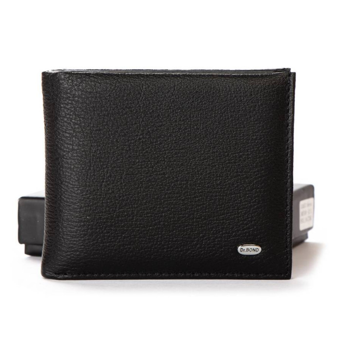 Чоловічий шкіряний гаманець Dr. Бонд. Закривається на магніт. Усередині знаходяться одне відкрите відділення для банкнот, затискач для банкнот, 6 кишень для карток та 4 великі кишені. зовні на звороті є монетниця на блискавці.