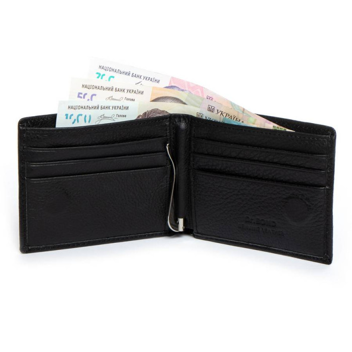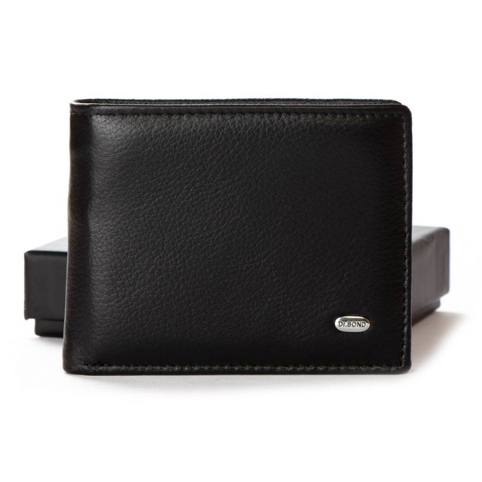 Чоловічий шкіряний гаманець Dr. Бонд. Закривається на магніт. Усередині знаходяться одне відкрите відділення для банкнот та одне на блискавці, затискач для банкнот та 6 кишень для карток. Зовні на звороті є монетниця на блискавці.