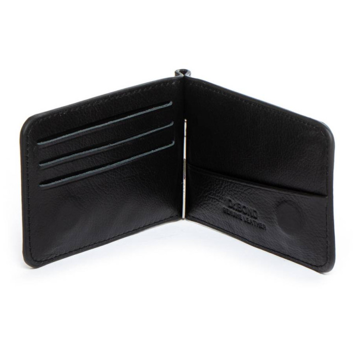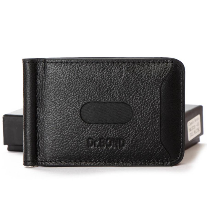 Чоловічий шкіряний затискач для банкнот Dr. Бонд. Закривається на магніт. Усередині знаходяться затискач для банкнот та 4 кишені для карток. Зовні на фасаді є відкрита плоска кишеня, а на звороті монетниця на блискавці.