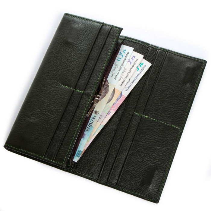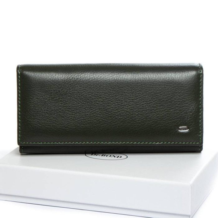 Великий шкіряний жіночий гаманець Dr.Bond. Закривається на магнітну застібку. Усередині знаходяться три відділення для банкнот, монетниця на клямці, велика відкрита кишеня і кишеня на блискавці. 10 кишень для візитних карт. Зовні на зворотному боці є велика відкрита кишеня.