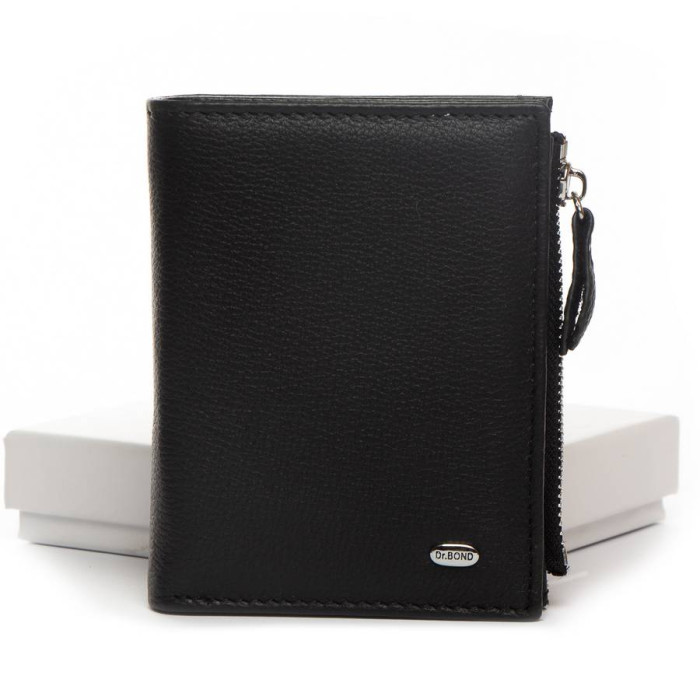Шкіряний жіночий гаманець Dr.Bond. Складається вдвічі та закривається на кнопку. Усередині знаходяться: одне відкрите відділення для банкнот, 4 кишені для візитних карток та 3 великі кишені. Зовні гаманця є монетниця на блискавці.