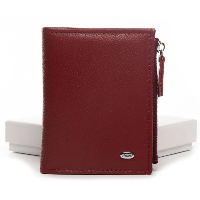 Шкіряний жіночий гаманець Dr.Bond. Складається вдвічі та закривається на кнопку. Усередині знаходяться: одне відкрите відділення для банкнот, 4 кишені для візитних карток та 3 великі кишені. Зовні гаманця є монетниця на блискавці.