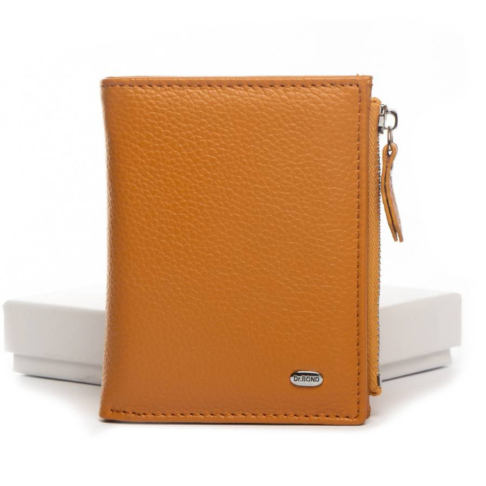 Шкіряний жіночий гаманець Dr.Bond. Складається вдвічі та закривається на кнопку. Усередині знаходяться: одне відкрите відділення для банкнот, 4 кишені для візитних карток та 3 великі кишені. Зовні гаманця є монетниця на блискавці.