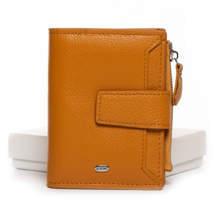 Шкіряний жіночий гаманець Dr.Bond. Закривається клапаном на кнопці. Усередині знаходяться два відкриті відділення для банкнот, 13 кишень для візитних карток. на відкидному блоці та 4 великі кишені. Зовні гаманця є монетниця на блискавці та відкрита кишеня на фасаді.