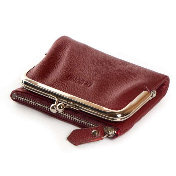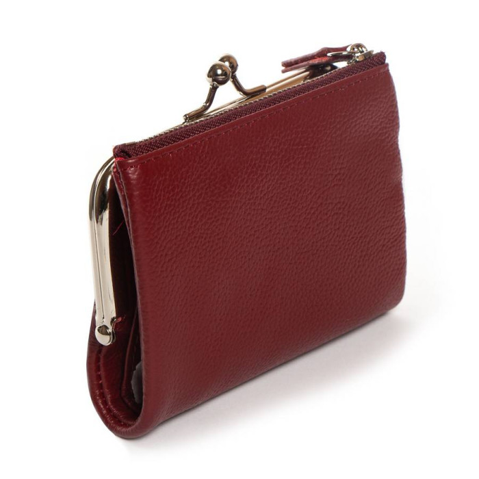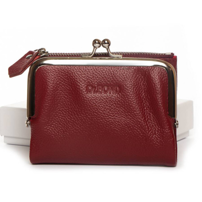 Шкіряний жіночий гаманець Dr.Bond. Складається вдвічі та закривається на кнопку. Усередині знаходяться: одне відкрите відділення для банкнот, 6 кишень для візитних карток та 2 великі кишені. Зовні гаманця є дві монетниці, одна на клямці, а інша закривається на блискавку.