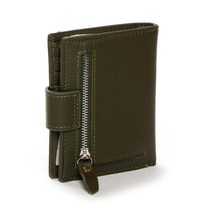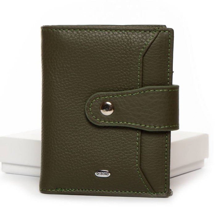 Шкіряний жіночий гаманець Dr.Bond. Складається вдвічі та закривається клапаном на кнопці. Усередині знаходяться: два відкритих відділення для банкнот, 6 кишень для візитних карток та 4 великі кишені. Зовні гаманця на звороті є монетниця на блискавці, а на фасаді відкрита плоска кишеня.