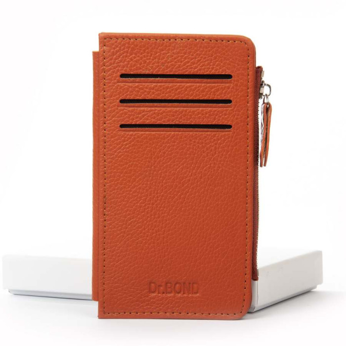 Жіночий гаманець - картхолдер Dr.Bond. Виготовлений із натуральної м'якої шкіри. Закривається кнопку. Усередині розташовано 10 кишень для карток. А зовні. на фасаді та вибраній стороні є по 3 кишені для карт. Кишеня для купюр розташована в торці гаманця і закривається на блискавку.