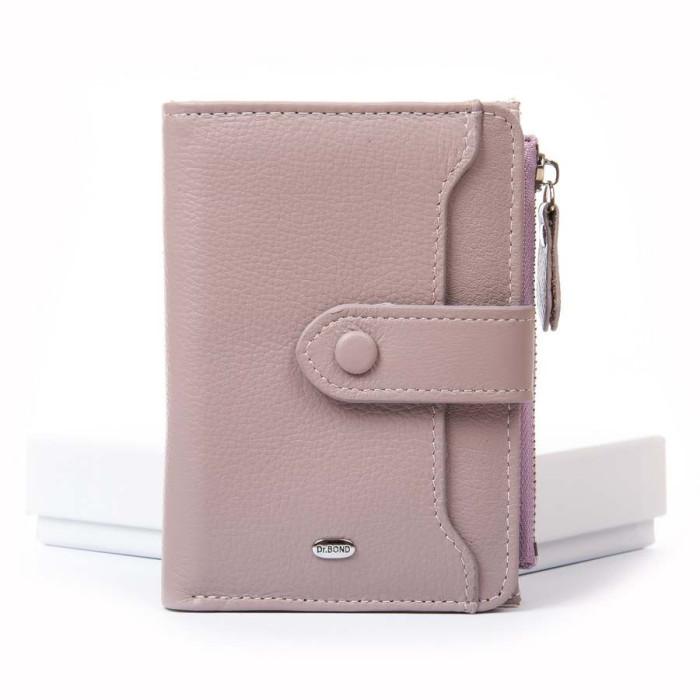 Жіночий гаманець Dr.Bond. Виготовлений із натуральної м'якої шкіри. Закривається клапаном на кнопці. Усередині знаходяться одне відкрите відділення для банкнот, 6 кишень для карток та 2 великі кишені. Зовні гаманця є монетниця на блискавці, відкрита кишеня на фасаді та невелика кишеня на блискавці на звороті.