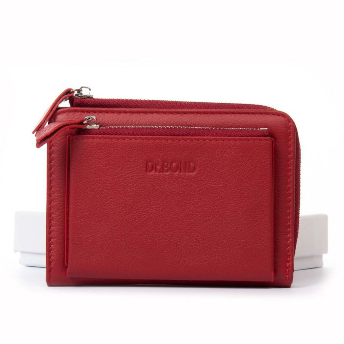 Жіночий гаманець Dr.Bond. Виготовлений із натуральної м'якої шкіри. Складається вдвічі та закривається на кнопку. Усередині знаходяться: одне відкрите відділення для банкнот, 4 кишені для карток та 2 великі кишені. Зовні гаманця на фасаді є монетниця на блискавці та велика кишеня-відділення на блискавці.