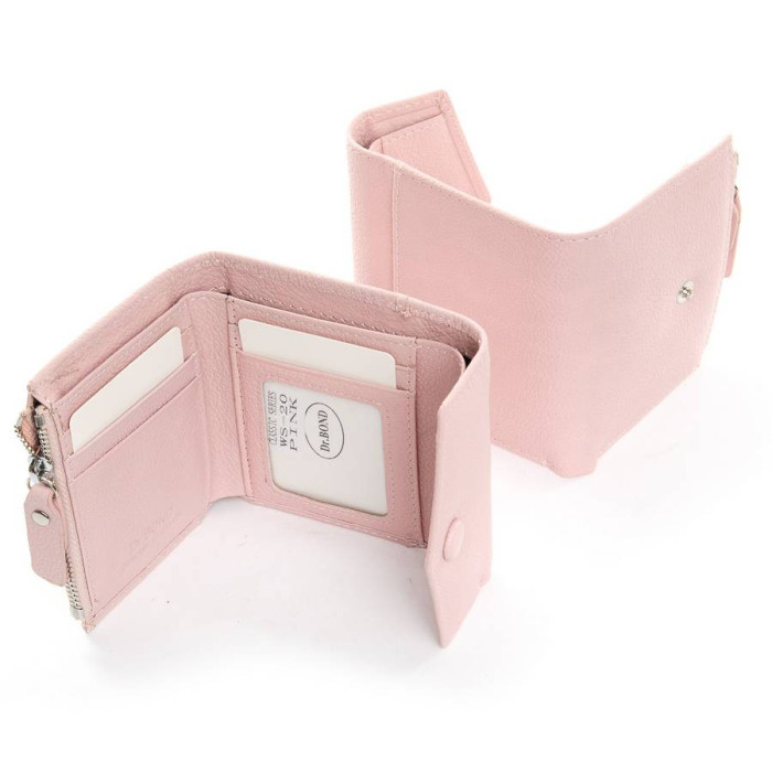 Жіночий компактний шкіряний гаманець DR. BOND. Основне відділення закривається клапаном на кнопку. М'яка шкіра з натуральною текстурою. Всередині знаходиться одне велике відкрите відділення для банкнот, 5 кишень для візитних карт і 2 великі відкриті кишені, а також монетница на блискавці. Ззовні гаманця на зворотному боці є плоска відкрита кишеня.