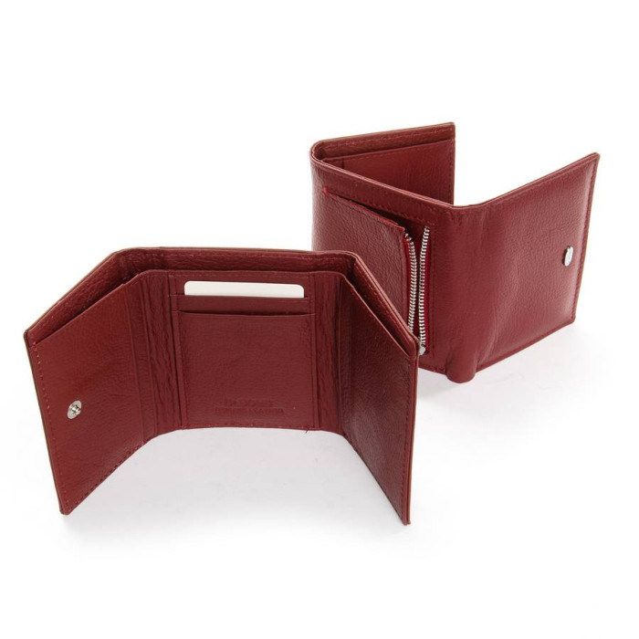 Жіночий компактний шкіряний гаманець Dr.Bond. Складається втричі і закривається на кнопку. М'яка шкіра з природною текстурою. Усередині знаходяться одне відкрите відділення для банкнот і 6 кишень для візитних карт. Зовні гаманця на зворотній сторні є карман-монетниця на блискавці. Розмір (см) 8,5*10,5*2,5
