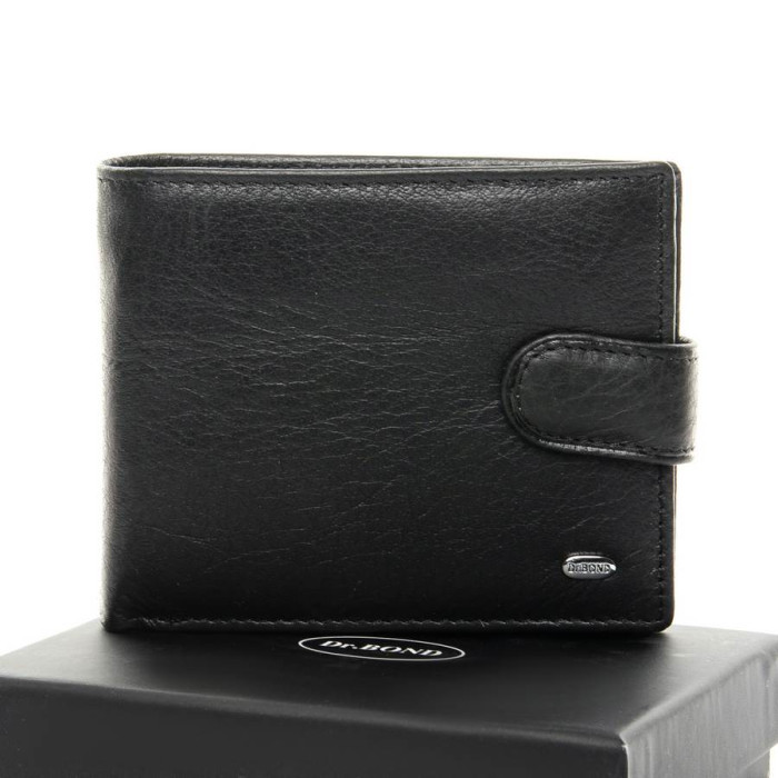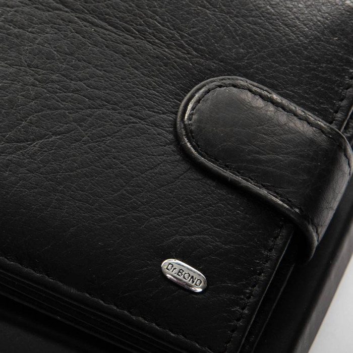 Чоловічий шкіряний гаманець Dr.Bond. Для банкнот є два відкритих відділення та одне на блискавці. На відкидному блоці знаходяться 6 кишень для візитних карток і 3 великих прозорих кишені. Також є монетниця на кнопці. Розмір (см) 12*9,5*3